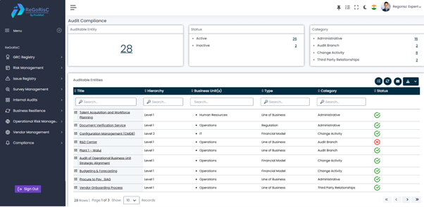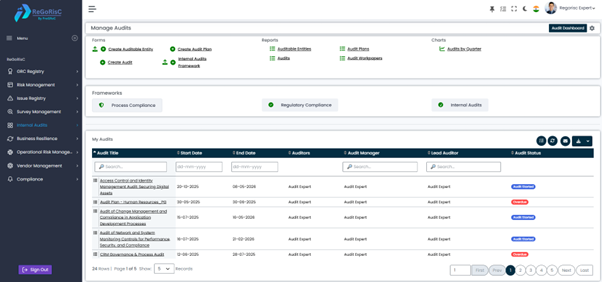 Internal Audit integrates seamlessly across the ReGoRisC platform: