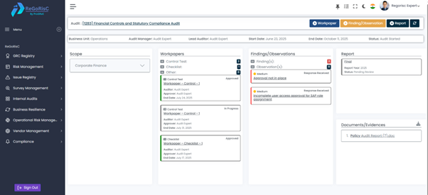 ReGoRisC elevates Internal Audit into a forward-looking, insight-rich function with end-to-end digital audit management.