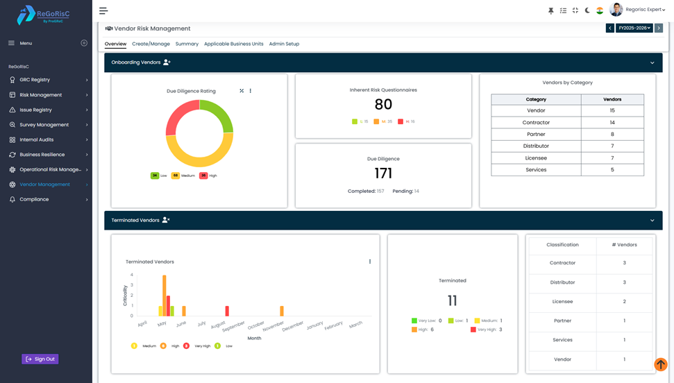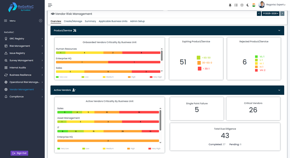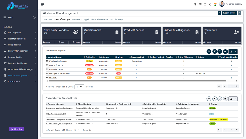ReGoRisC VRM unifies onboarding, due diligence, continuous monitoring, and risk assessment — helping you move from reactive compliance to proactive resilience.